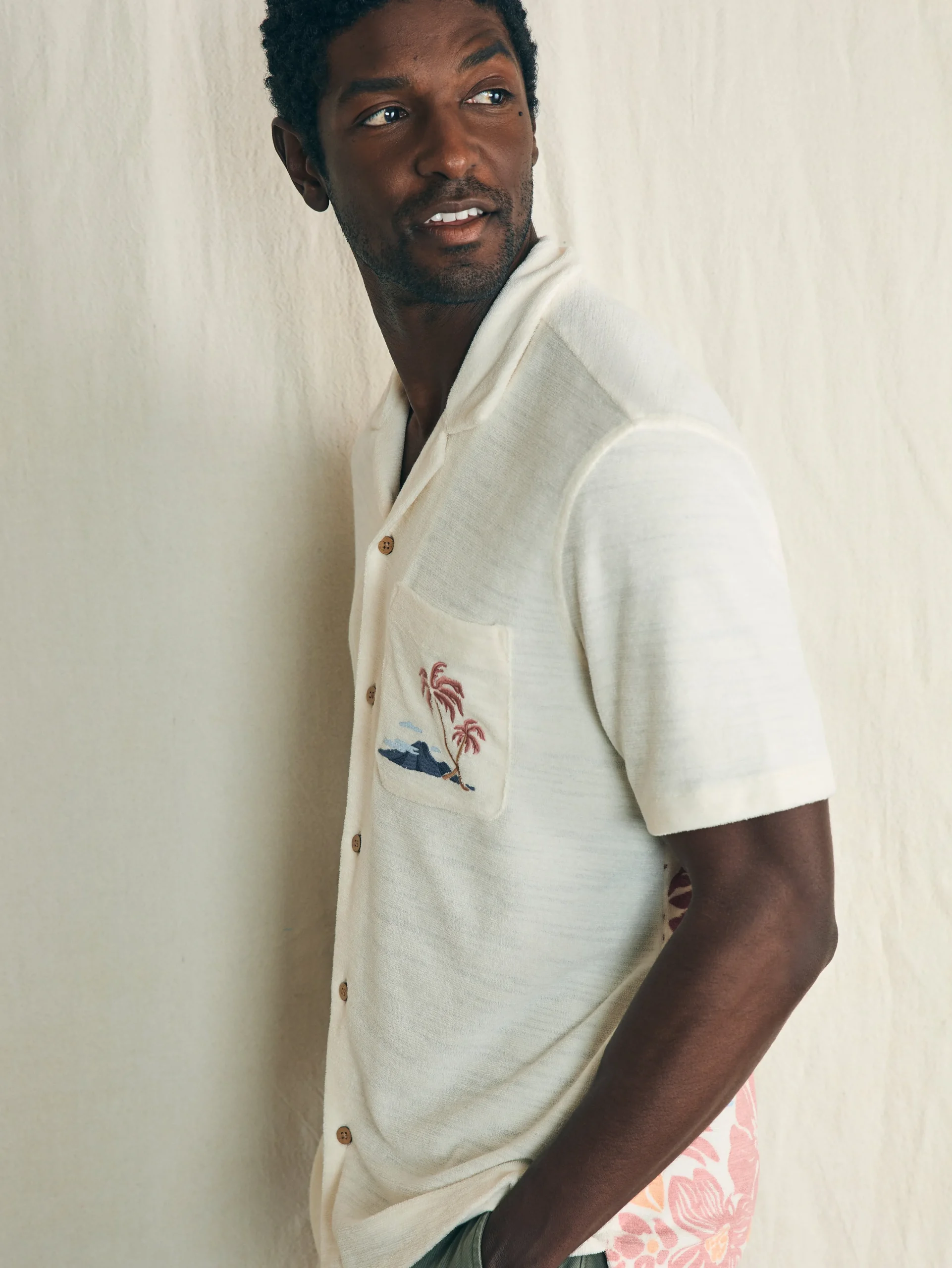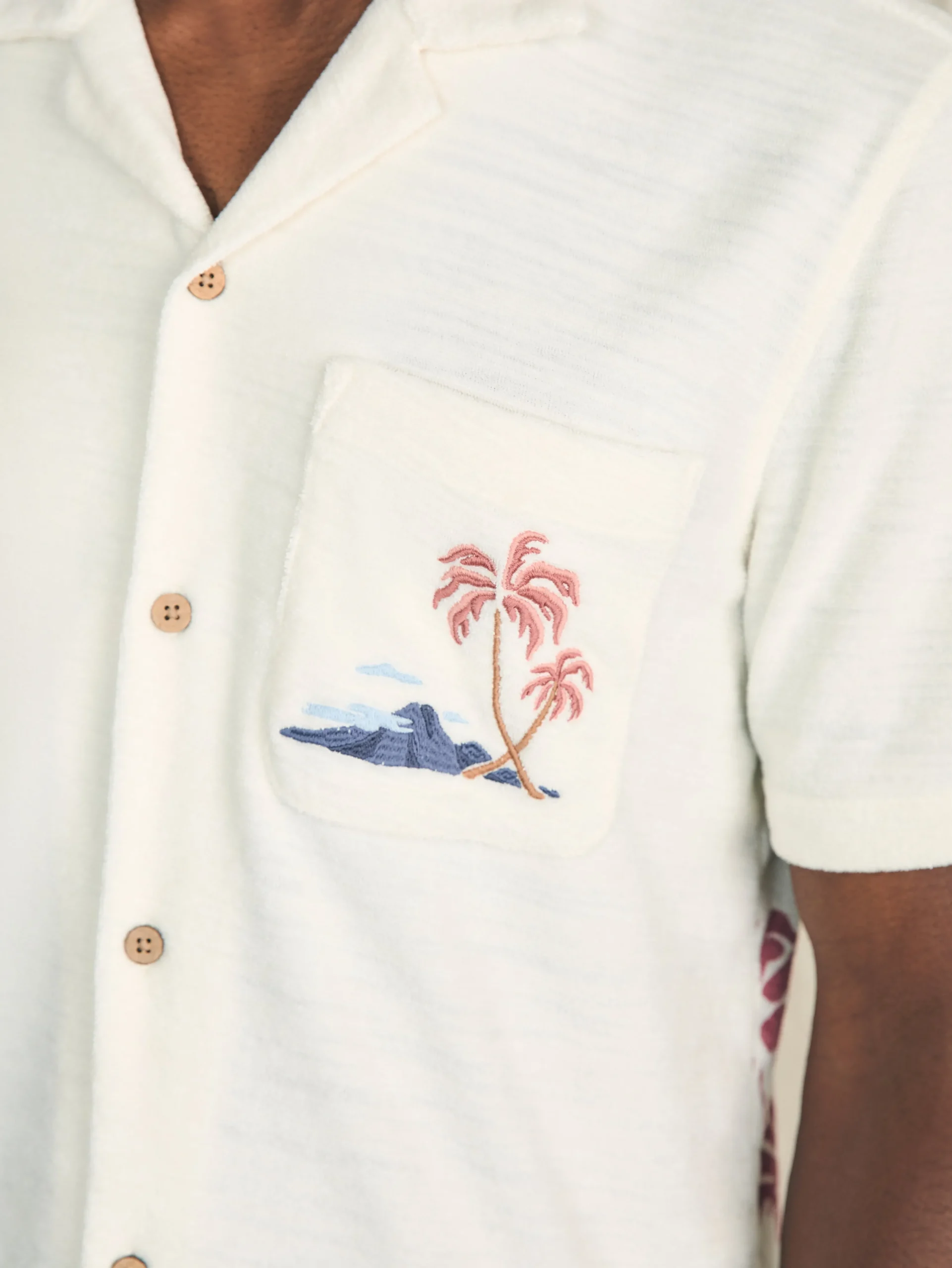 - Detail: Camp collar. Turnback placket. Single chest pocket.