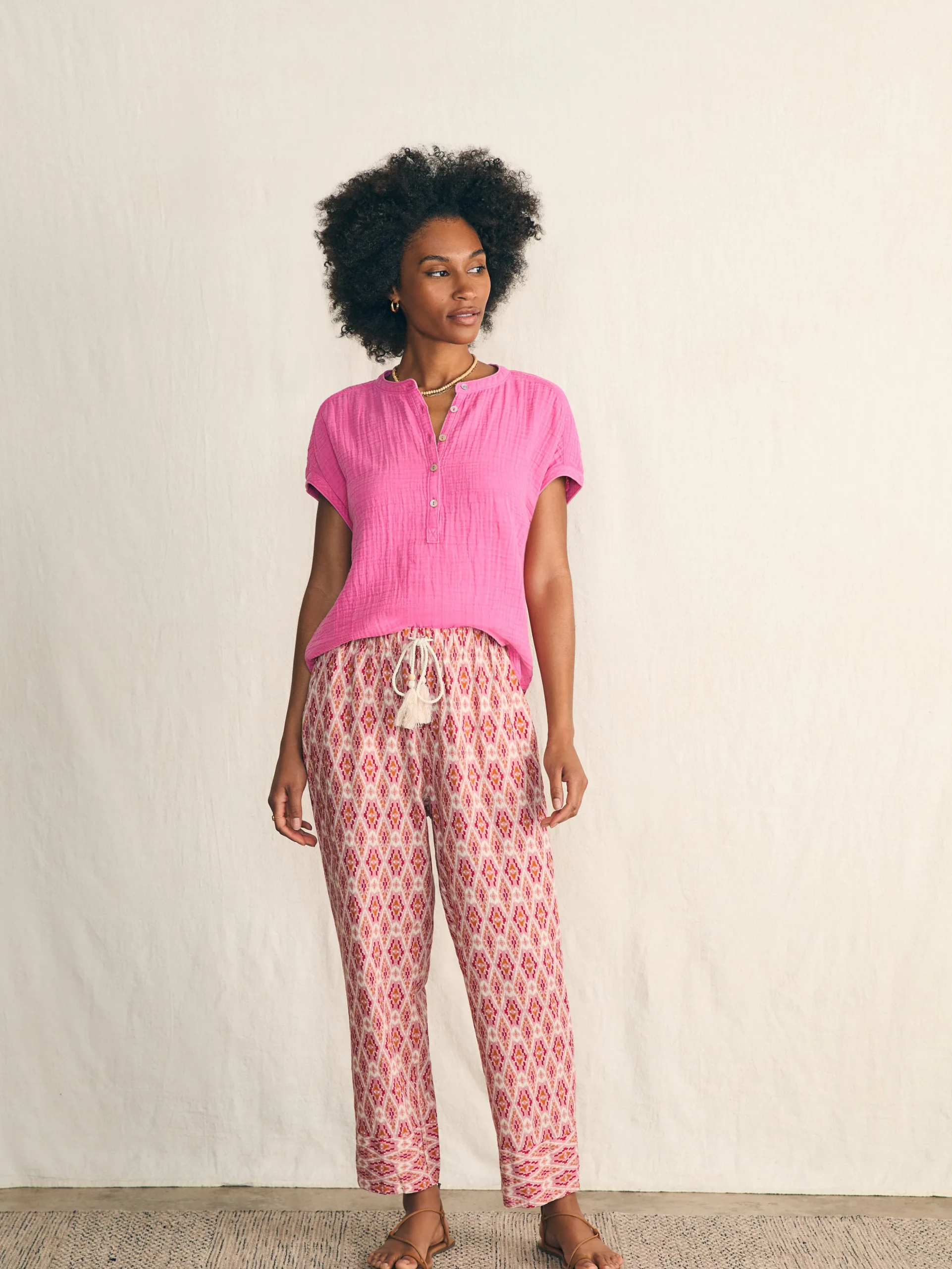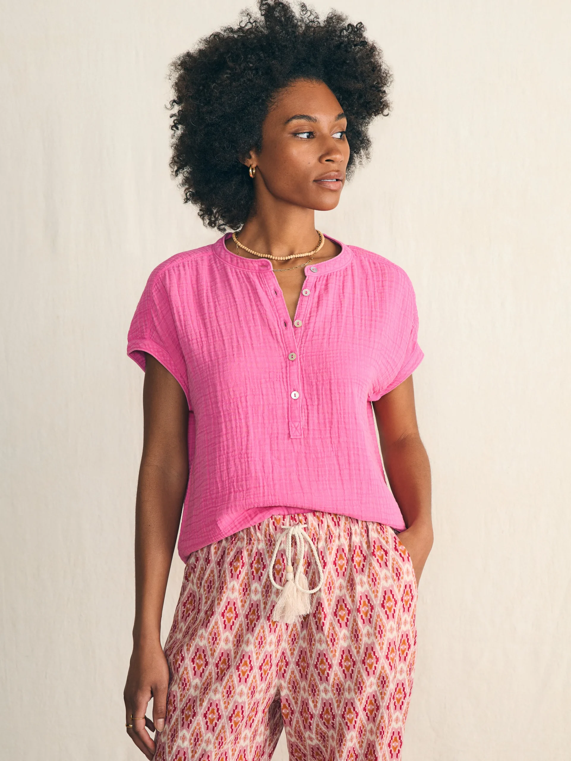 Crafted from our signature Dream Cotton Gauze — a breezy, airy organic double gauze fabric — this versatile top has a softly draped silhouette that’s equally perfect for casual days, special nights and wherever else the warm weather takes you.