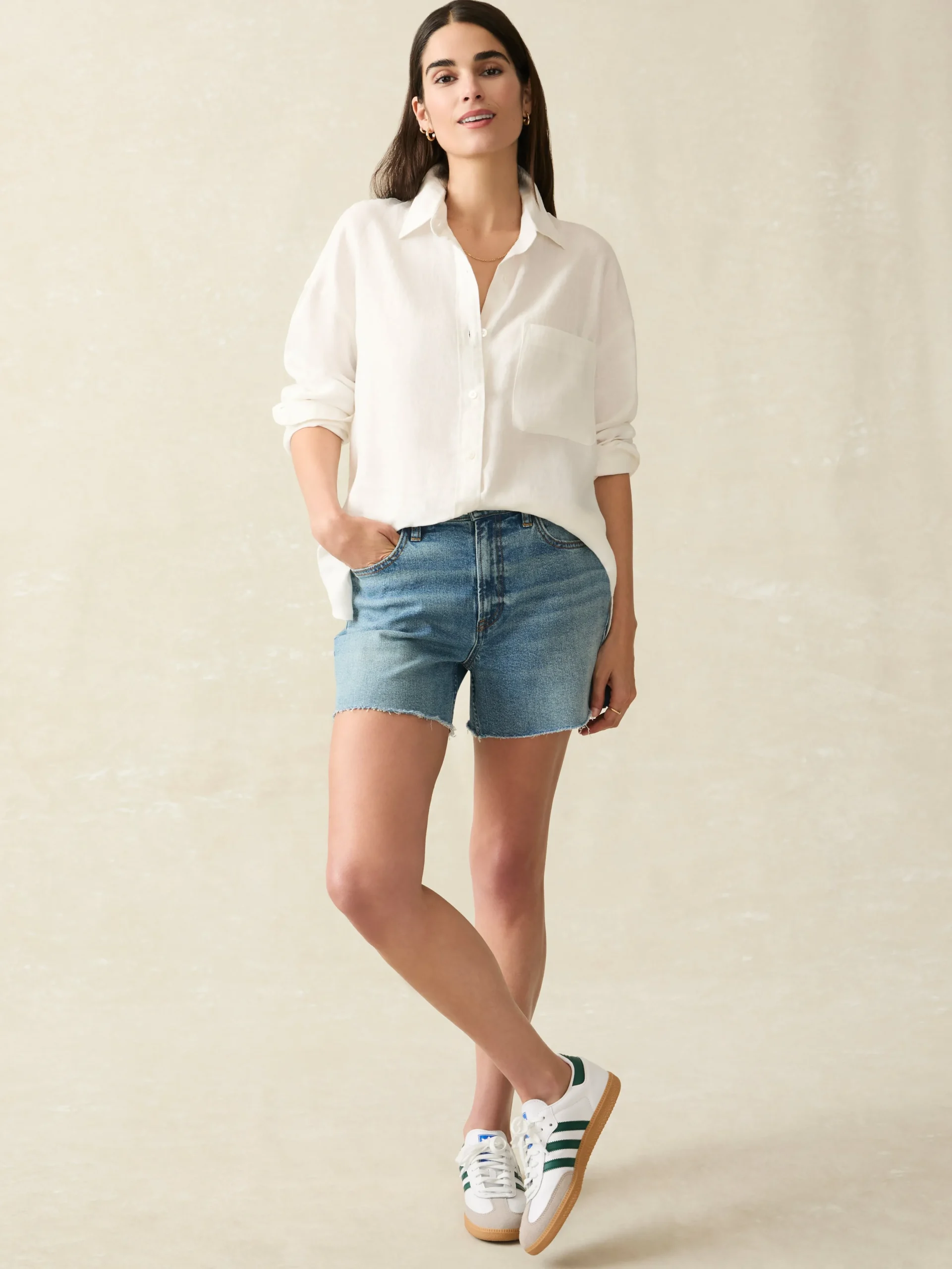 - Material: 100% Linen, Real Agoya Shell Buttons