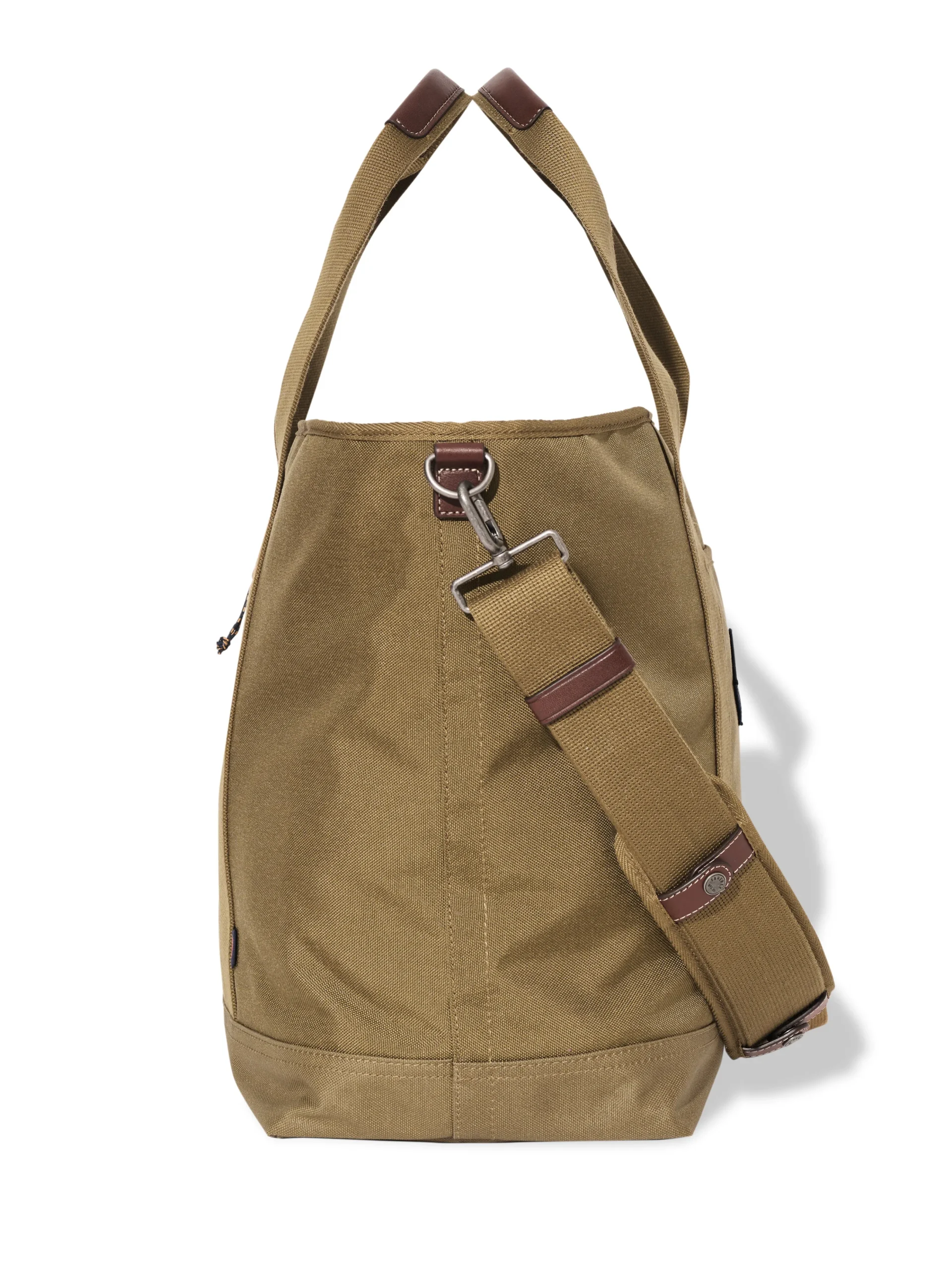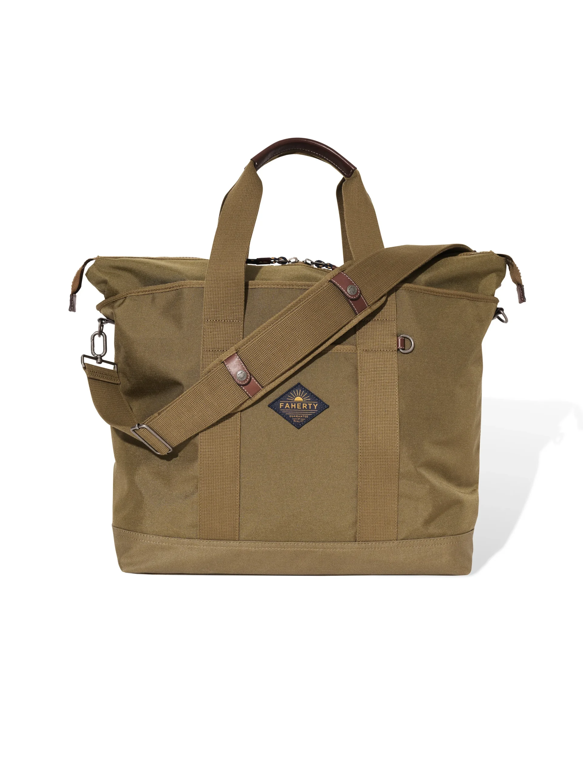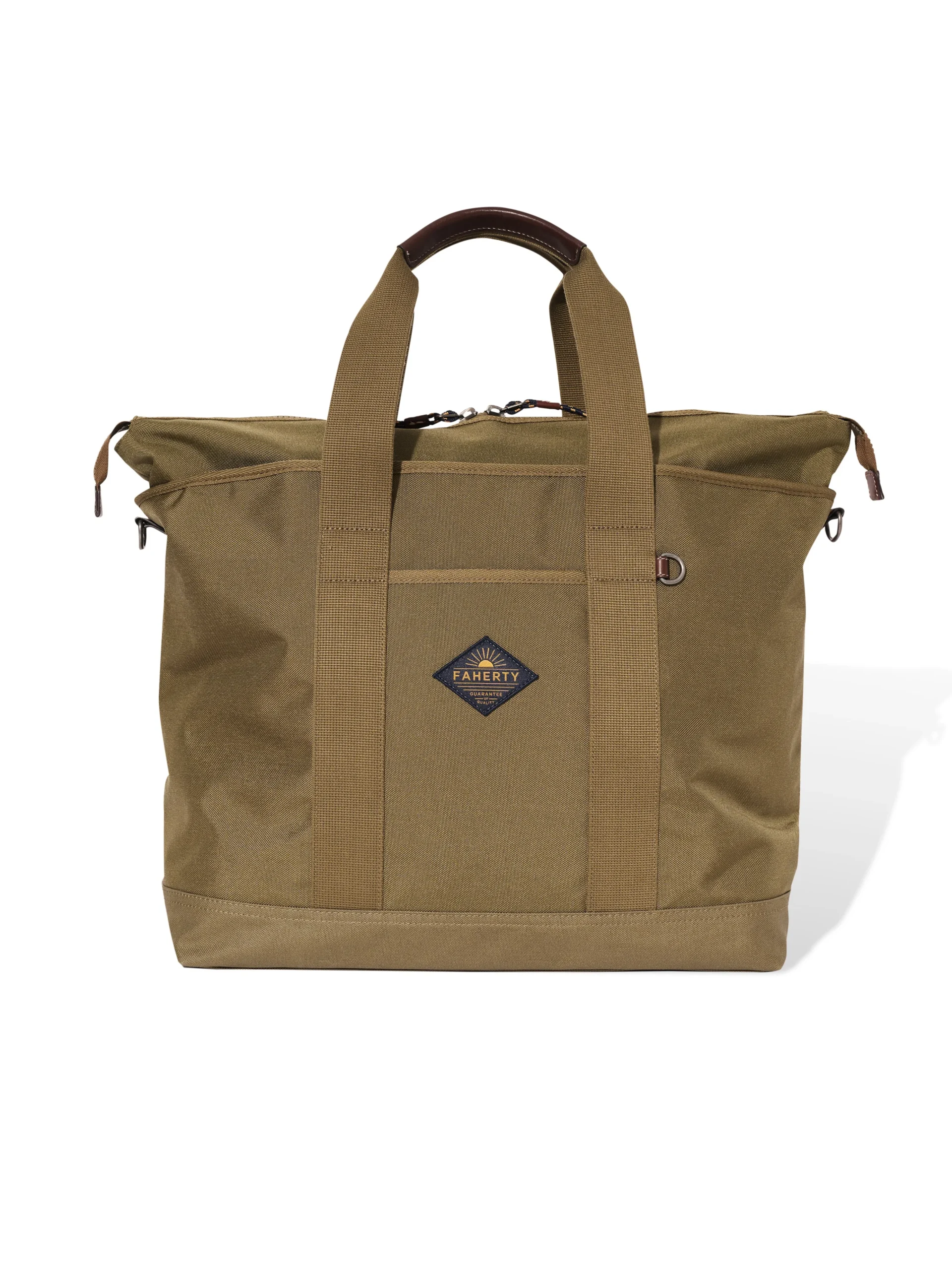 Travel is in our DNA and we’ve logged thousands of miles chasing the sun and waves. For our first ever bag collection, we knew we had to create some epic gear for when adventure calls. The Latitude Weekender Tote embodies that in every stitch. It’s your all-purpose, no-fuss companion, perfect for work commutes or riding shotgun on all your escapades. Made from lightweight, durable, and water-resistant recycled nylon, it’s got ample space for your essentials – including an internal padded zip pocket for a laptop. We thought of everything: interior pockets with microfiber lining to protect your phone and glasses, back zip stash pockets, and even a drawstring bag for your shoes or wet items. Topping it off is genuine leather trim (processed with DriTan™ Technology which drastically reduces the amount of water used in tanning) for a rugged charm that also stands up to the rigors of travel.