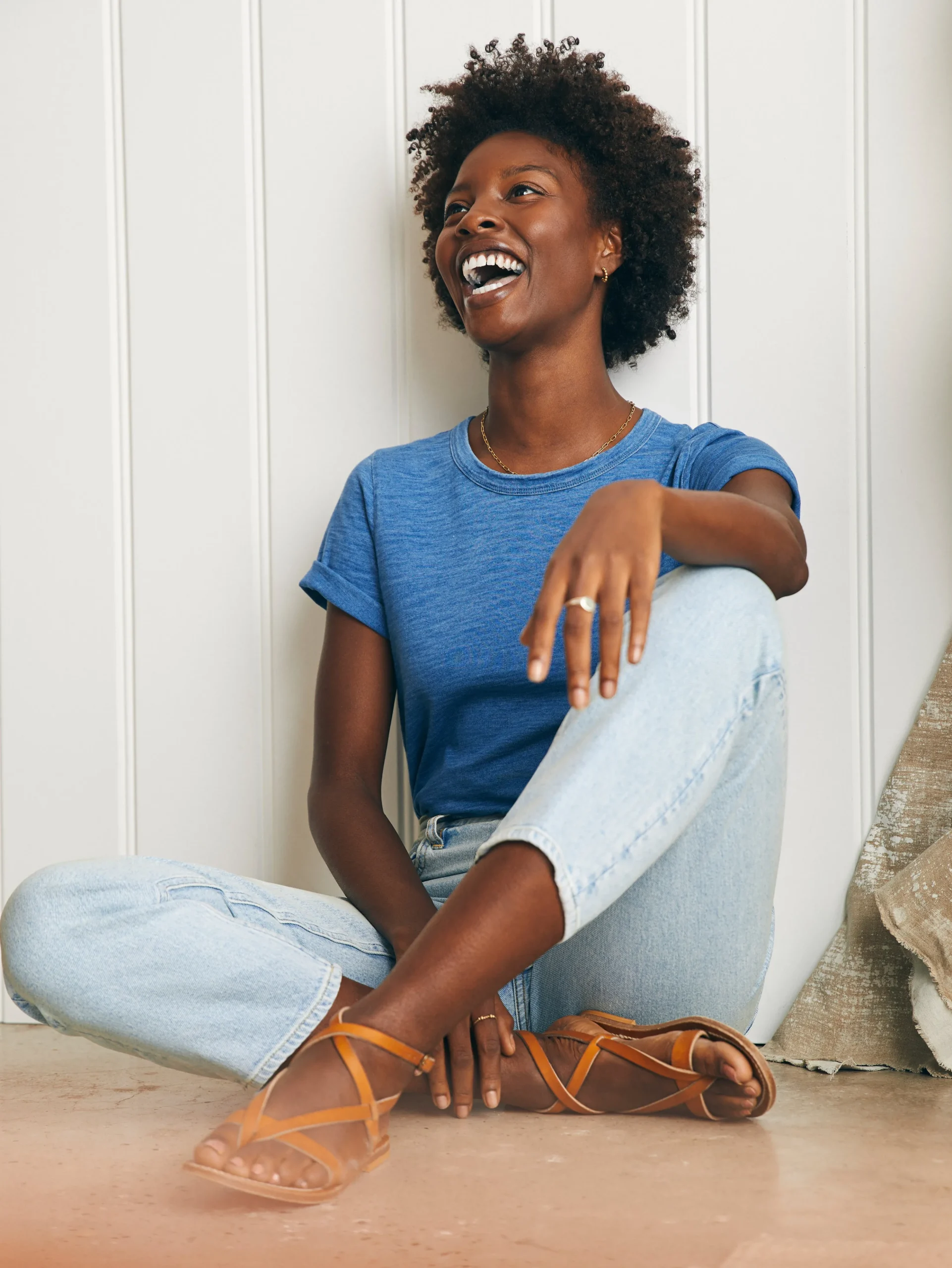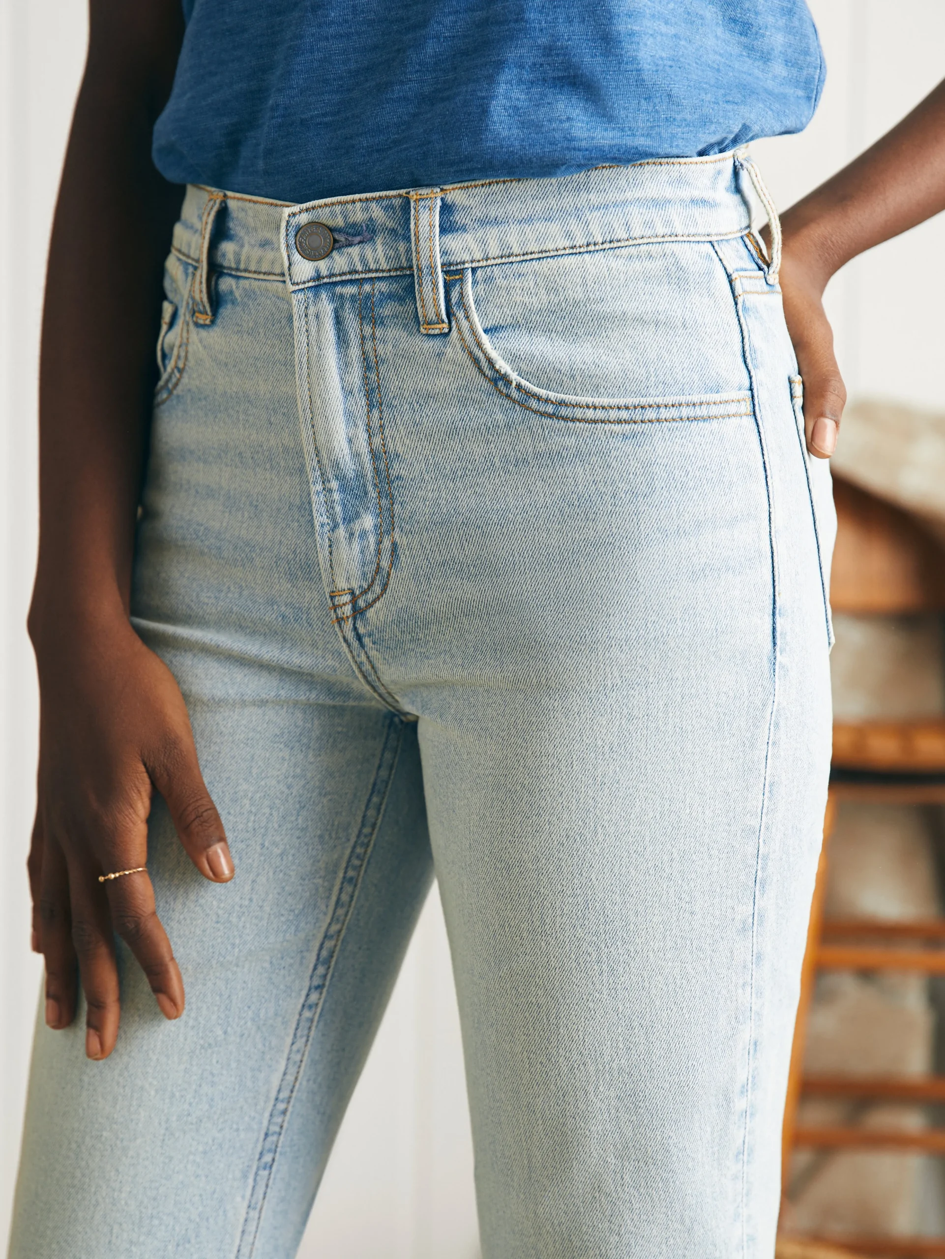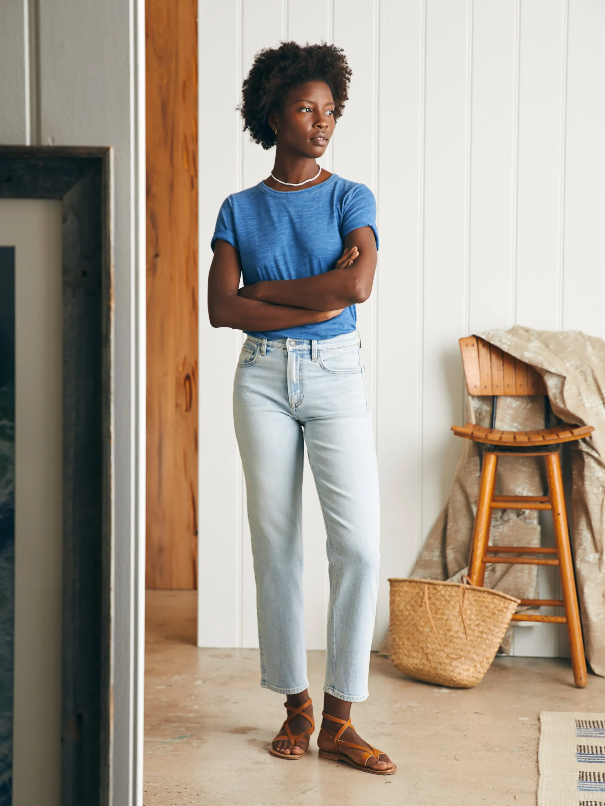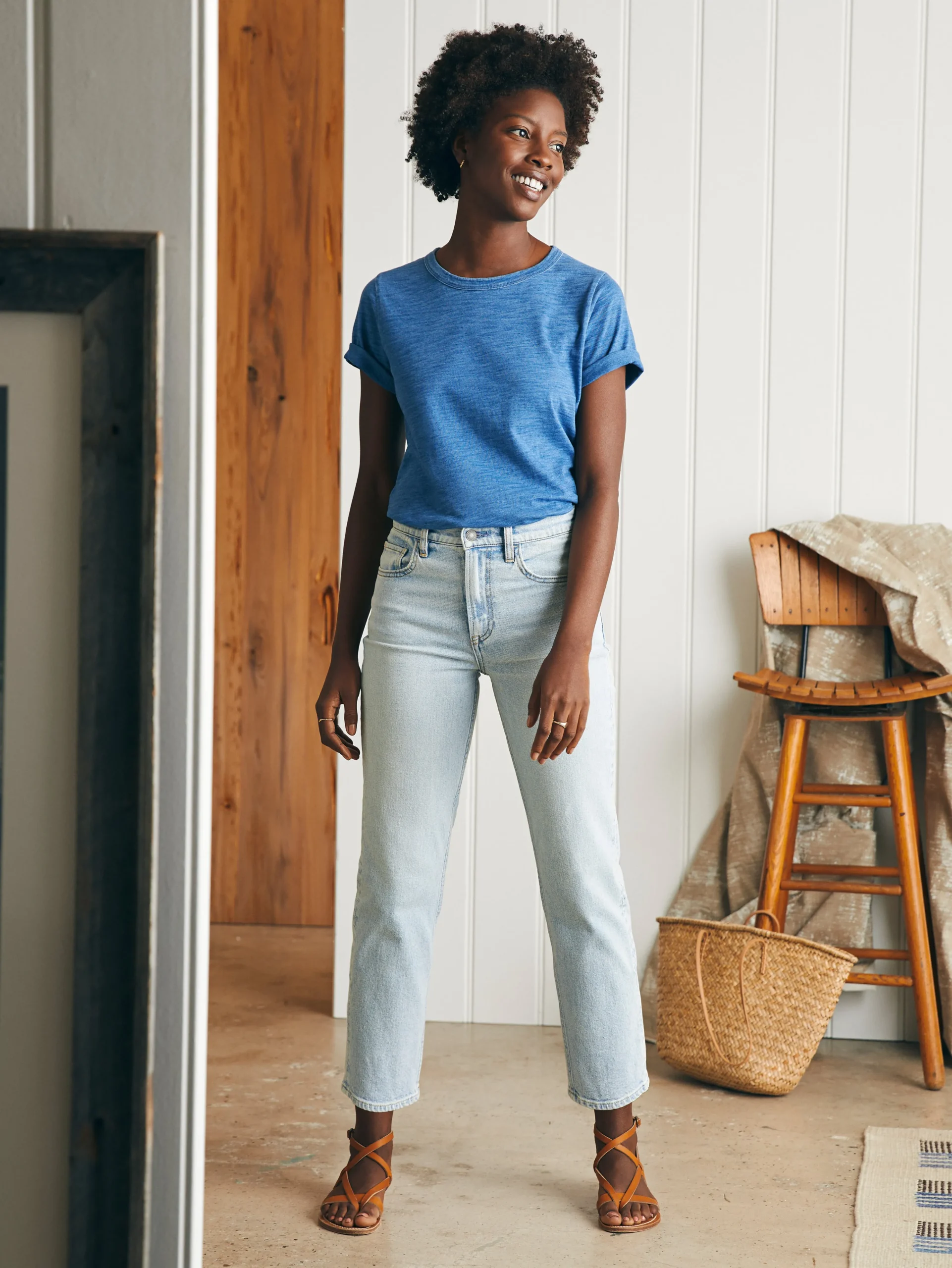 We spent years developing the perfect denim fabric—organic cotton woven with a textured slub yarn that washes down and ages beautifully. Combined with the perfect amount of stretch and a just-right fit that’s comfortable enough for all-day wear, yet elevated for a night out, they’re the most comfortable and lived-in jeans you’ve ever worn. They also feature an innovative, energy-efficient wash process that utilizes 80% less water than conventional denim wash methods. Polished or casual, this ankle length straight leg does it all with a truly versatile, authentic wash of color.
