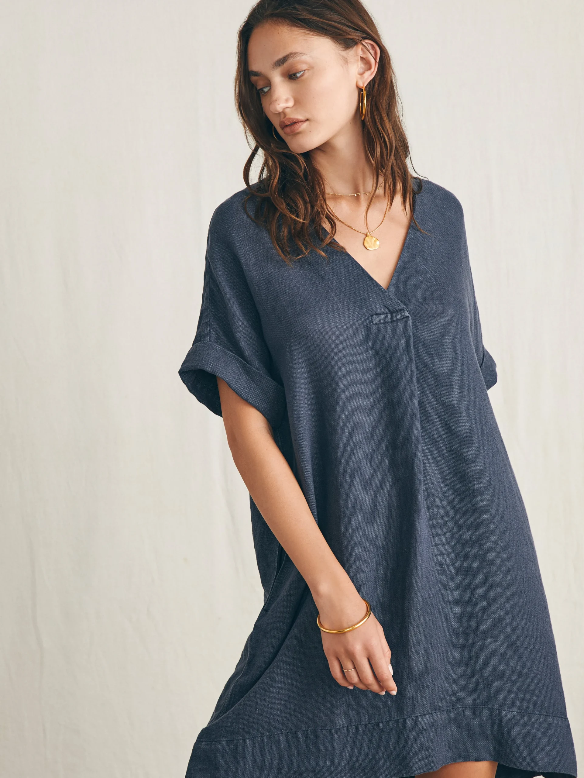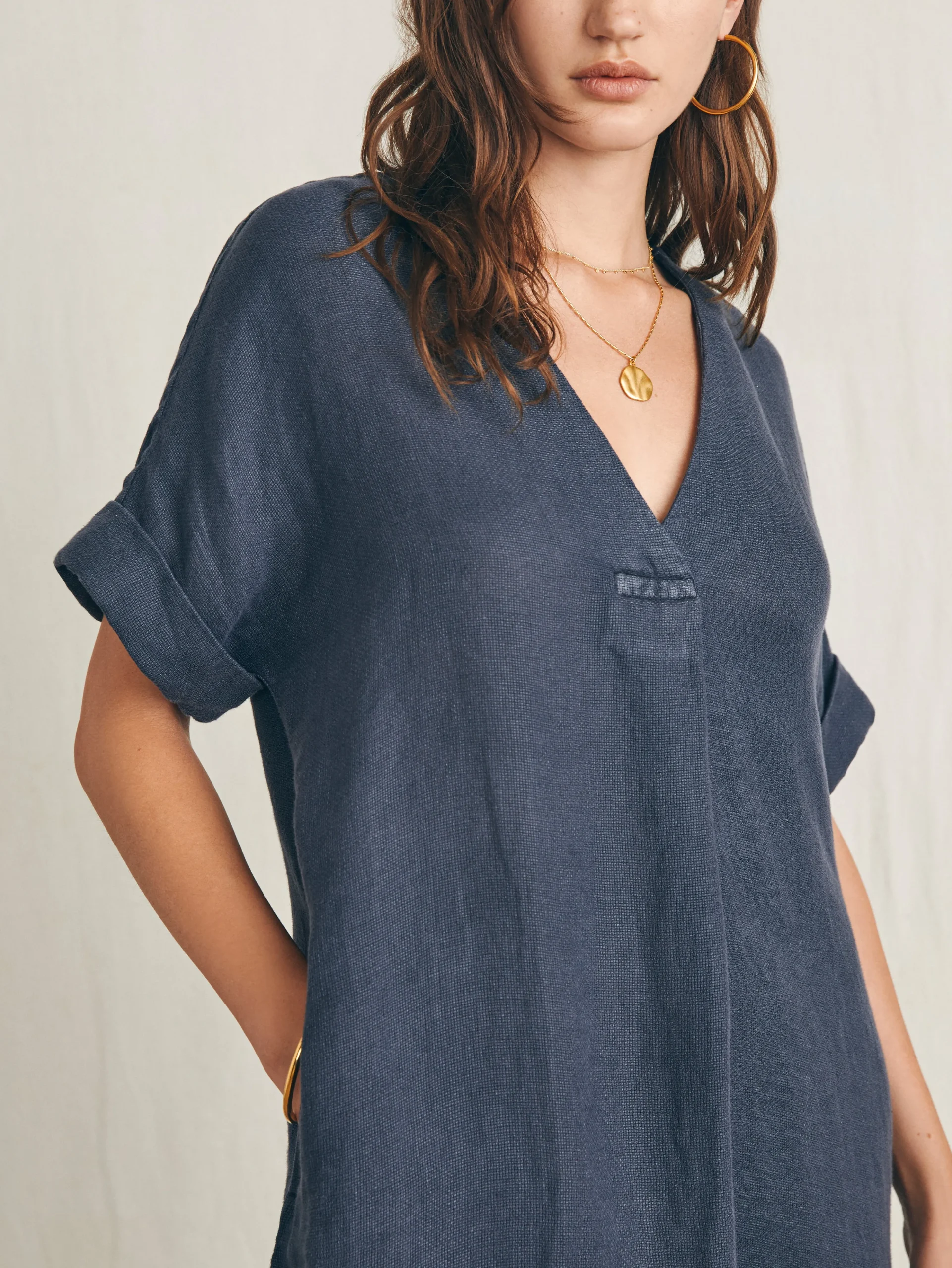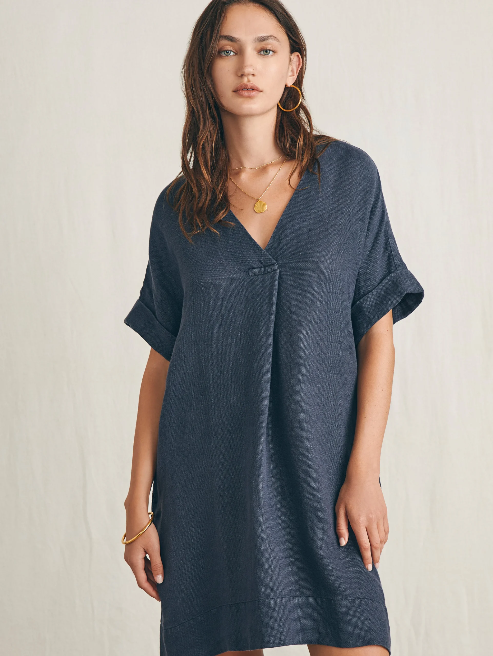 It’s all about barefoot glamour in our effortless pullover dress made for the most leisurely days. The luxe basketweave texture of this premium linen gives it an elevated drape that looks perfect with a spritz in hand. We recommend sizing down if you prefer a more fitted look.
